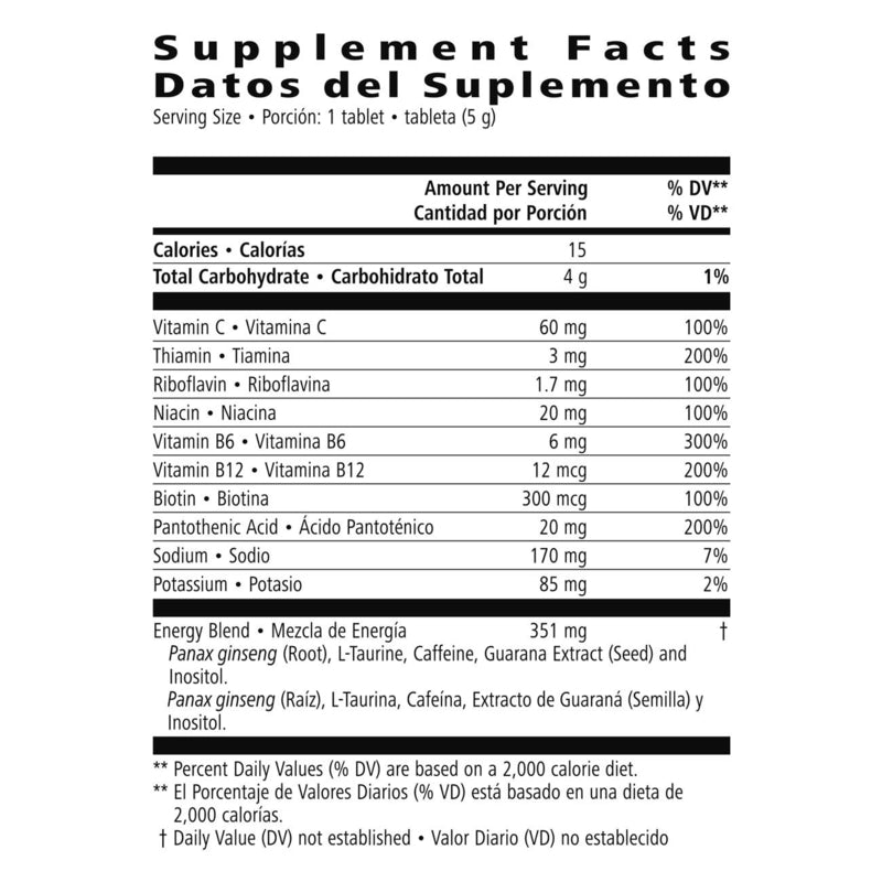 • Specially formulated with 351 mg of a unique energy blend that includes Panax ginseng, L-taurine, caffeine, guarana extract and inositol